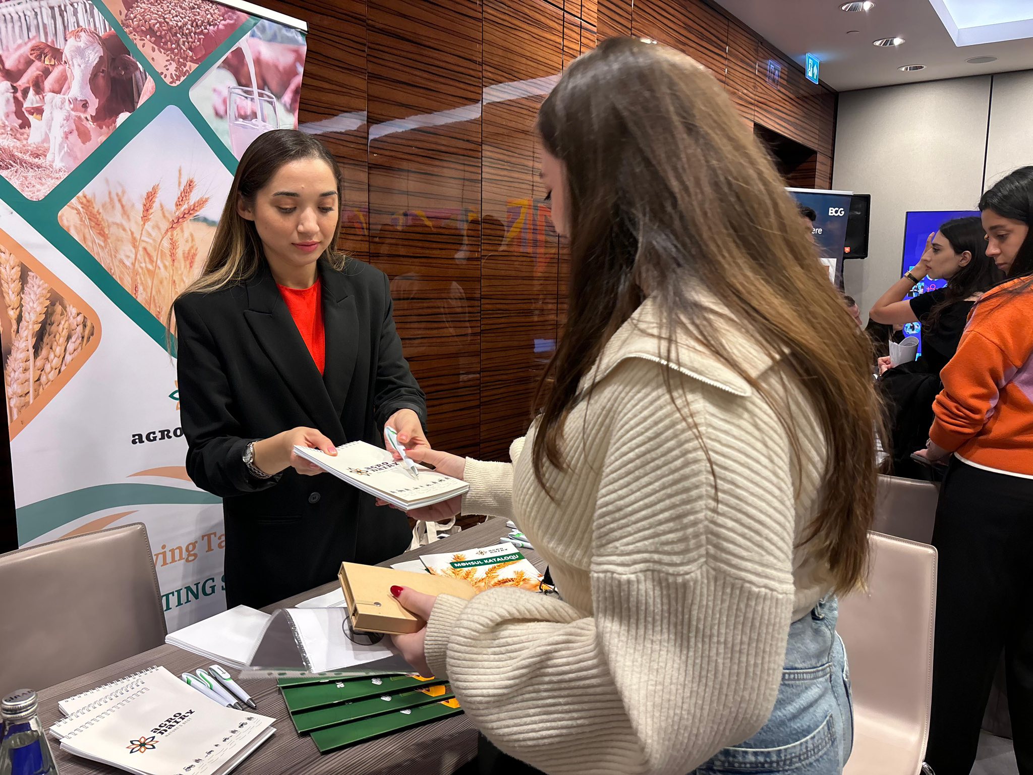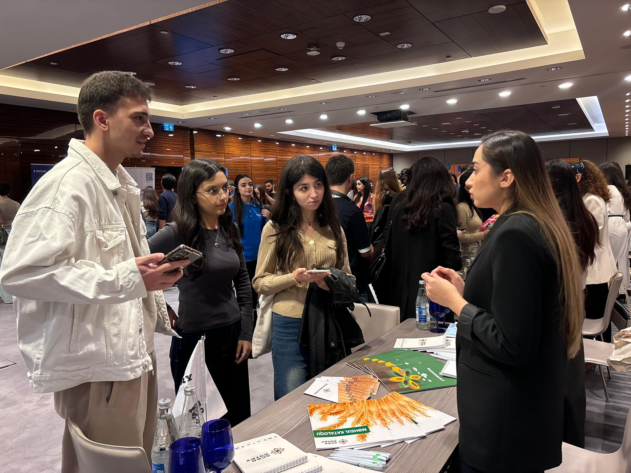Sərgi çərçivəsində gənclər “Agro Dairy” stendini ziyarət edərək şirkətin mövcud karyera, mentorluq və təcrübə imkanları barədə ətraflı məlumat əldə ediblər.